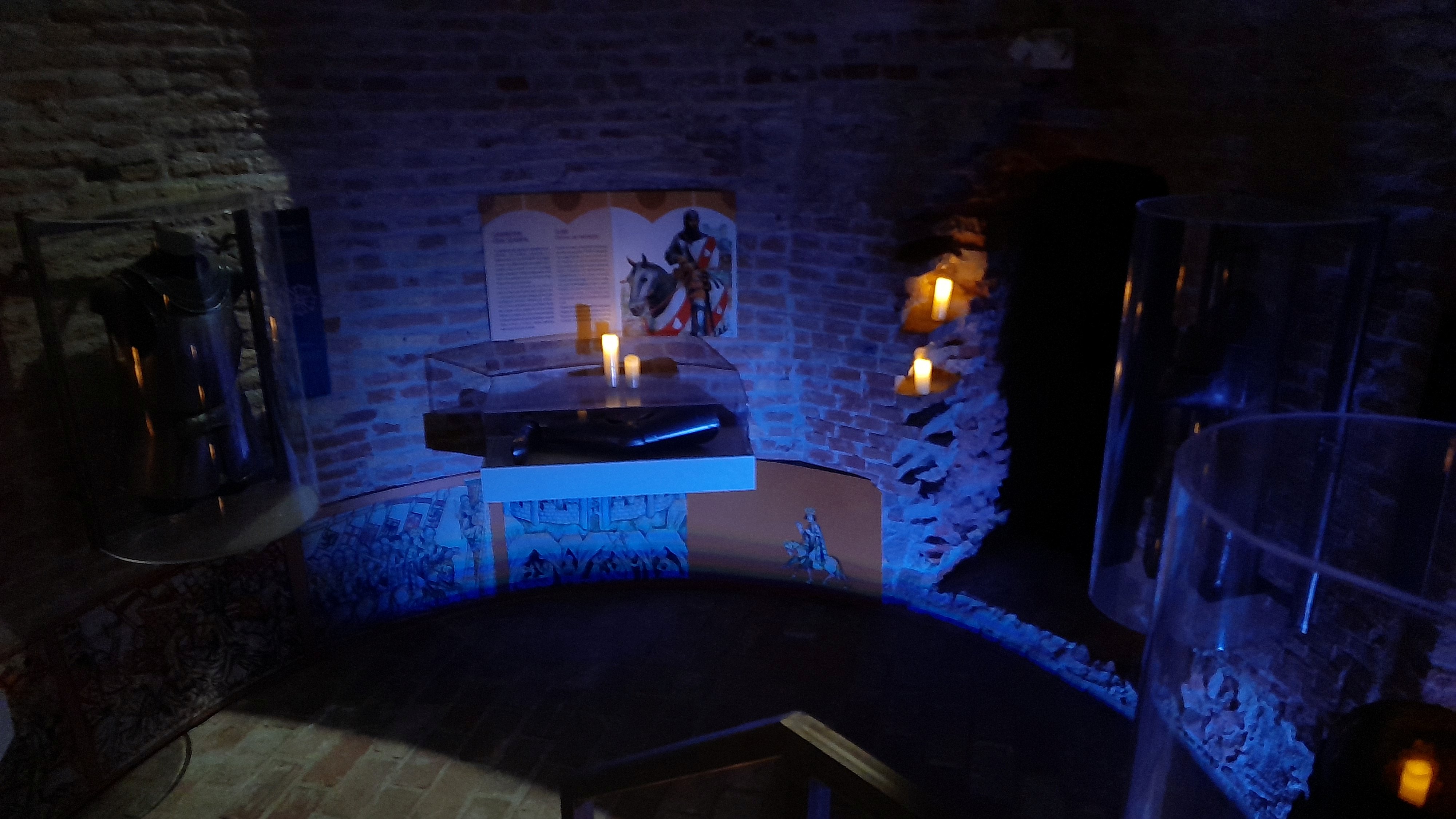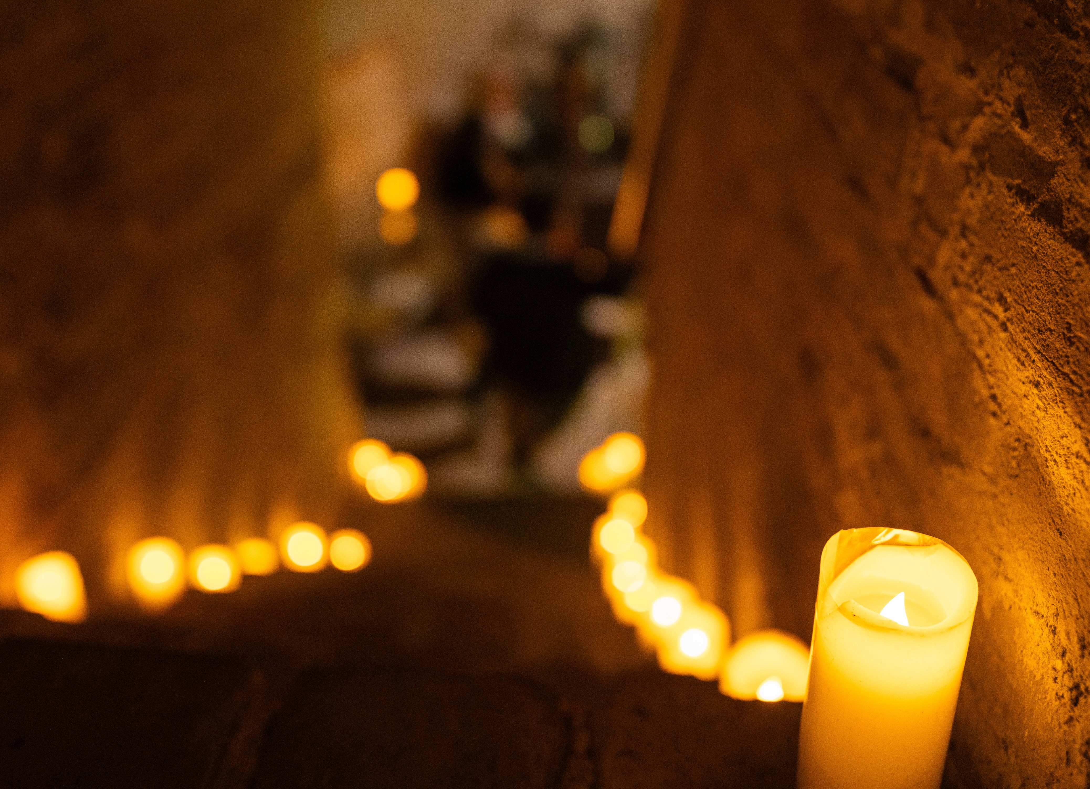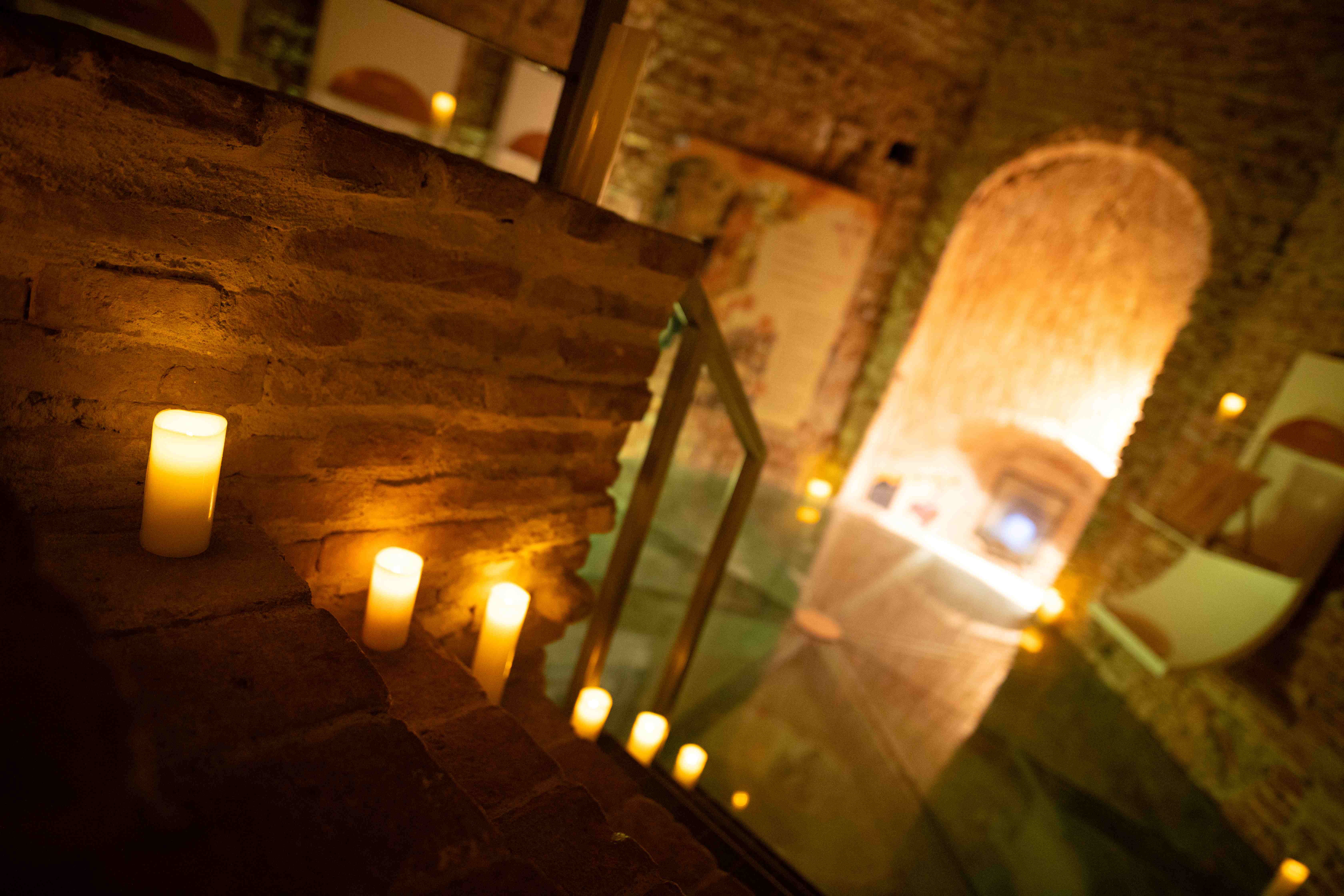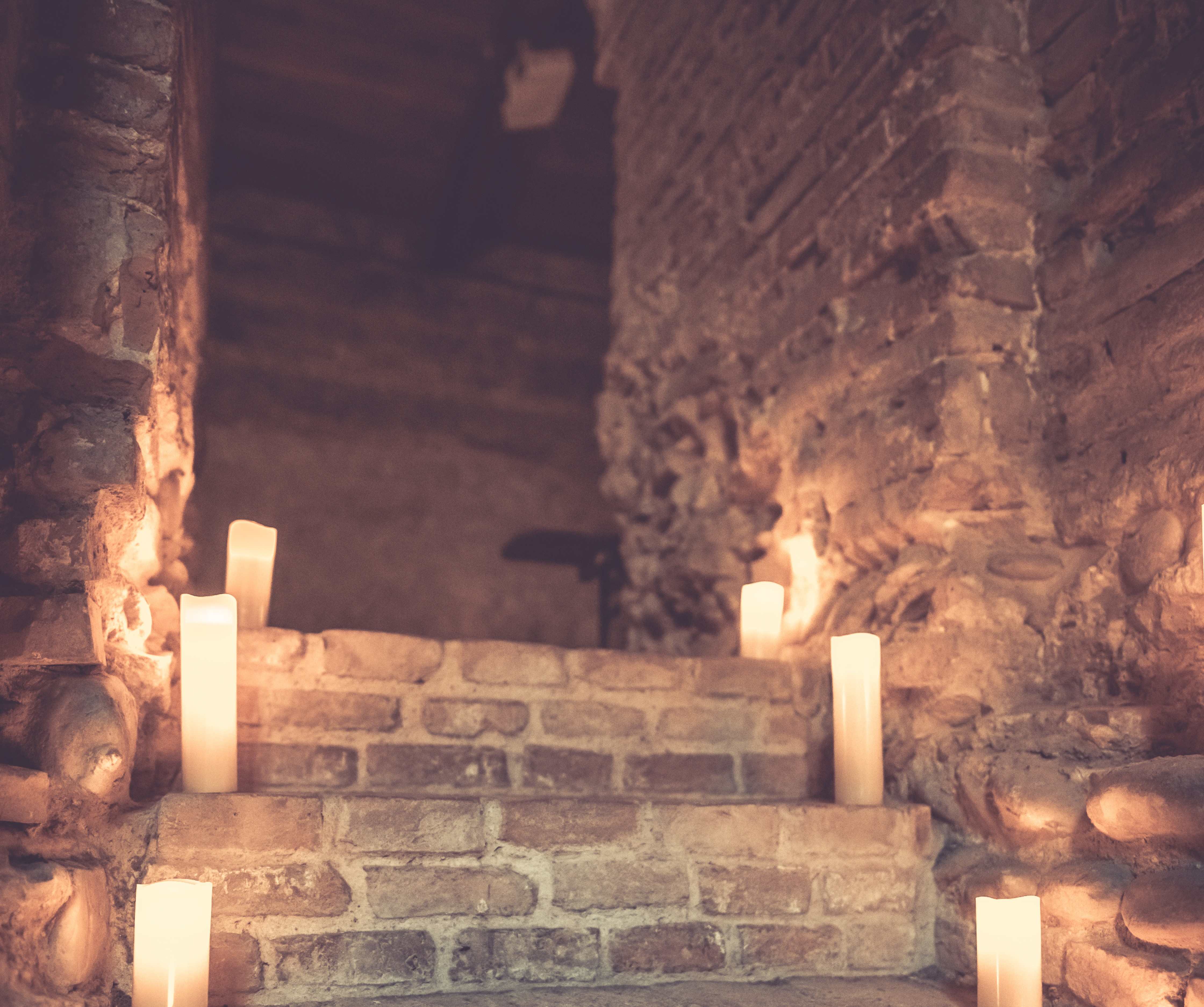 Visita guidata della Rocca di Riolo, illuminata dalla calda luce delle candele.