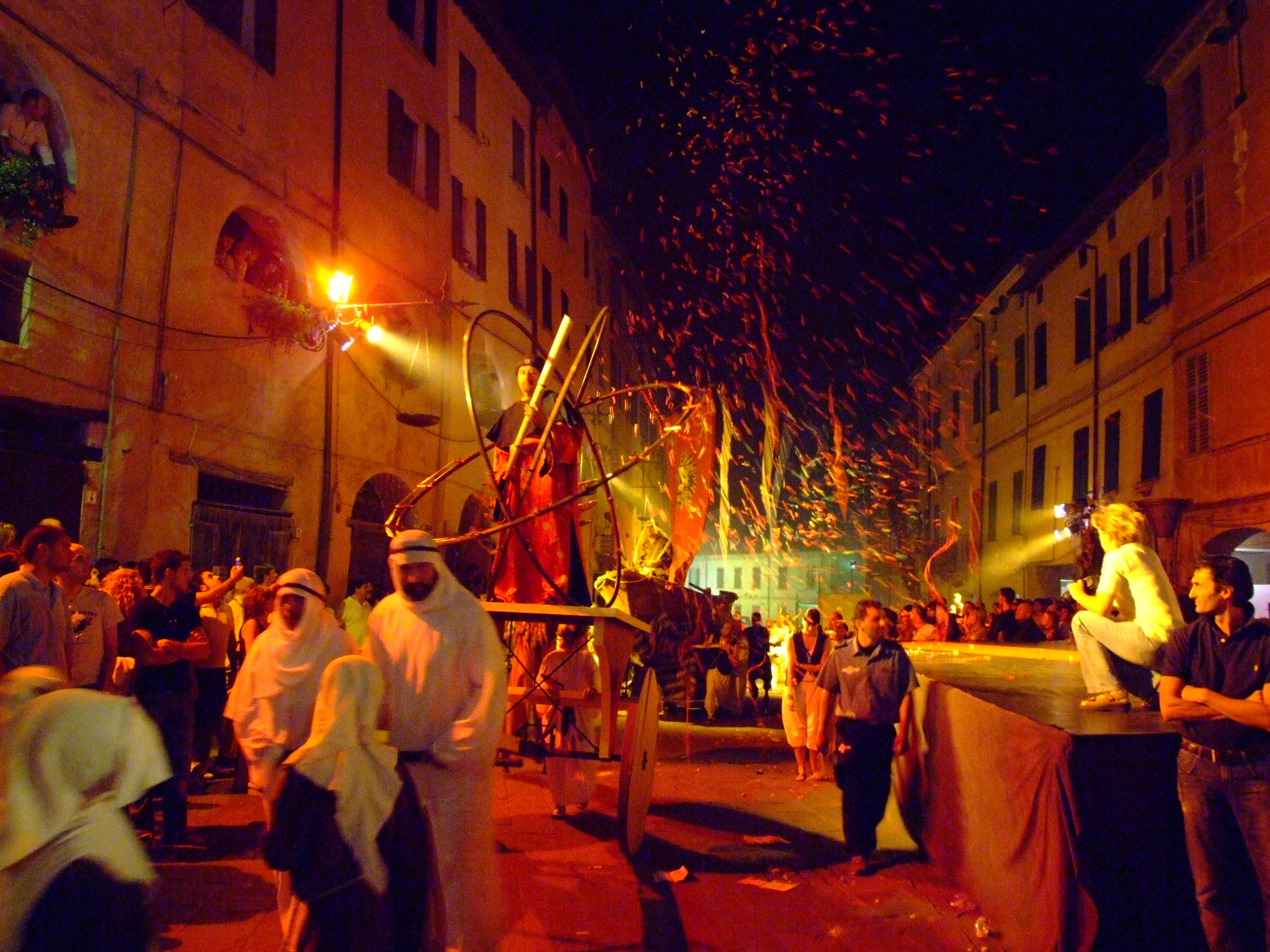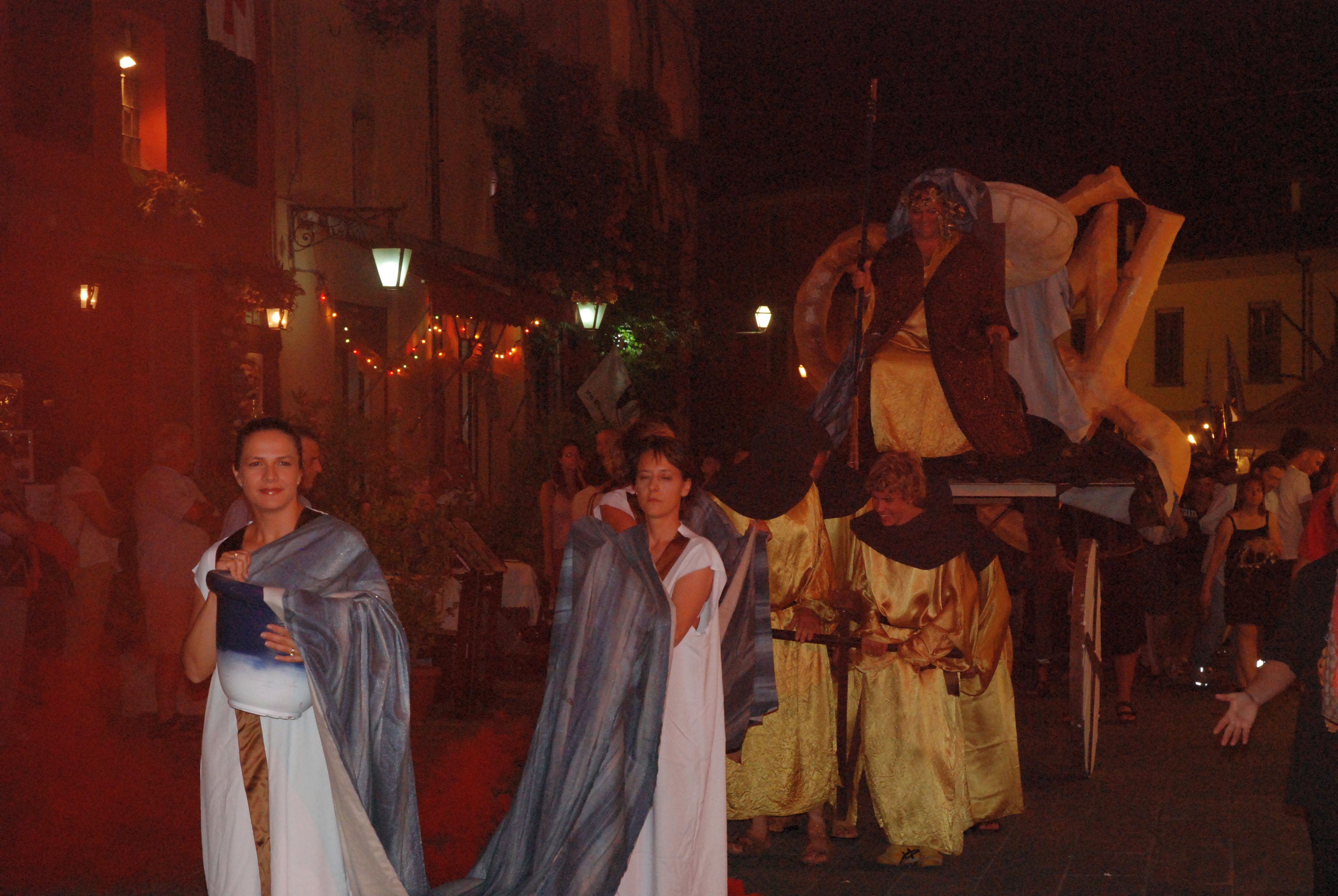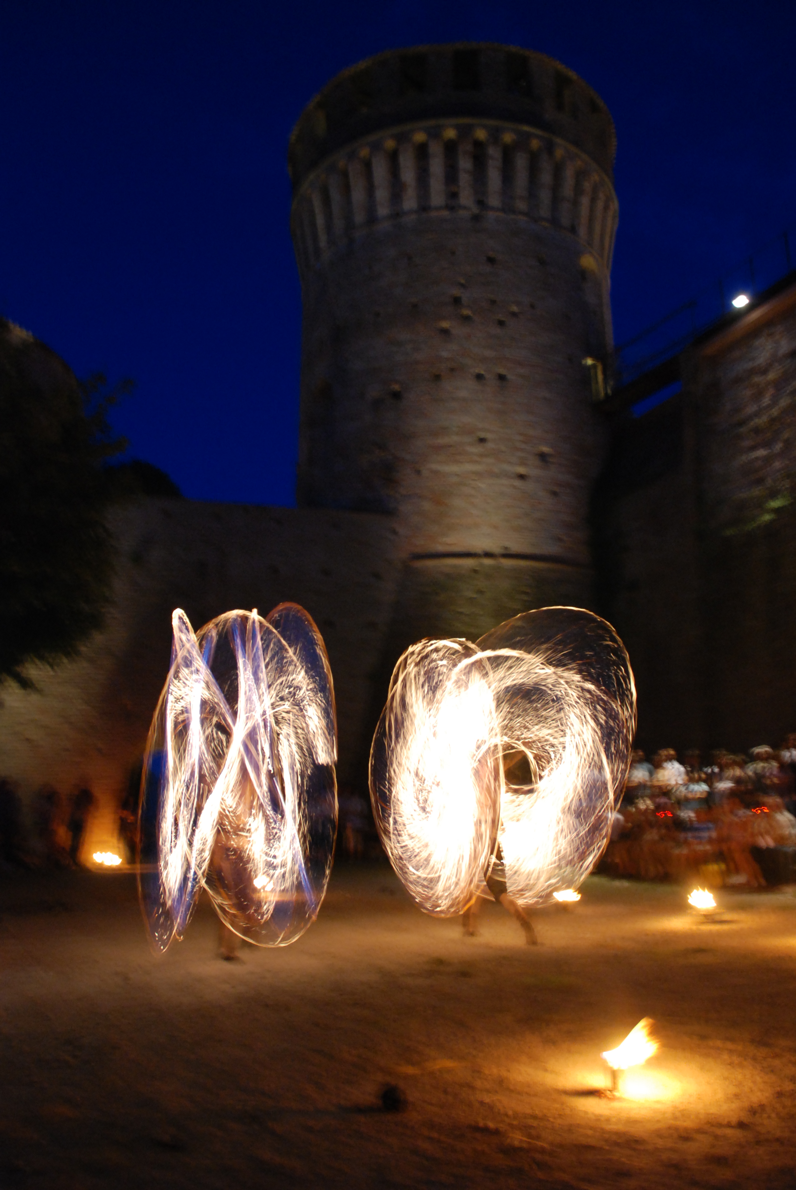 Il programma include mercati medievali con artigiani e botteghe tematiche, vie animate da giullari, maghi, giochi antichi, didattiche storiche su armi, sartoria, cucina, oreficeria; ci sono inoltre osterie medievali che propongono piatti tradizionali d’epoca con ricette fedeli al gusto antico. Nei momenti serali l’atmosfera si fa più intensa: luci di torce, fuochi, spettacoli itineranti e musica dal vivo diffondono un fascino evocativo sotto le stelle.