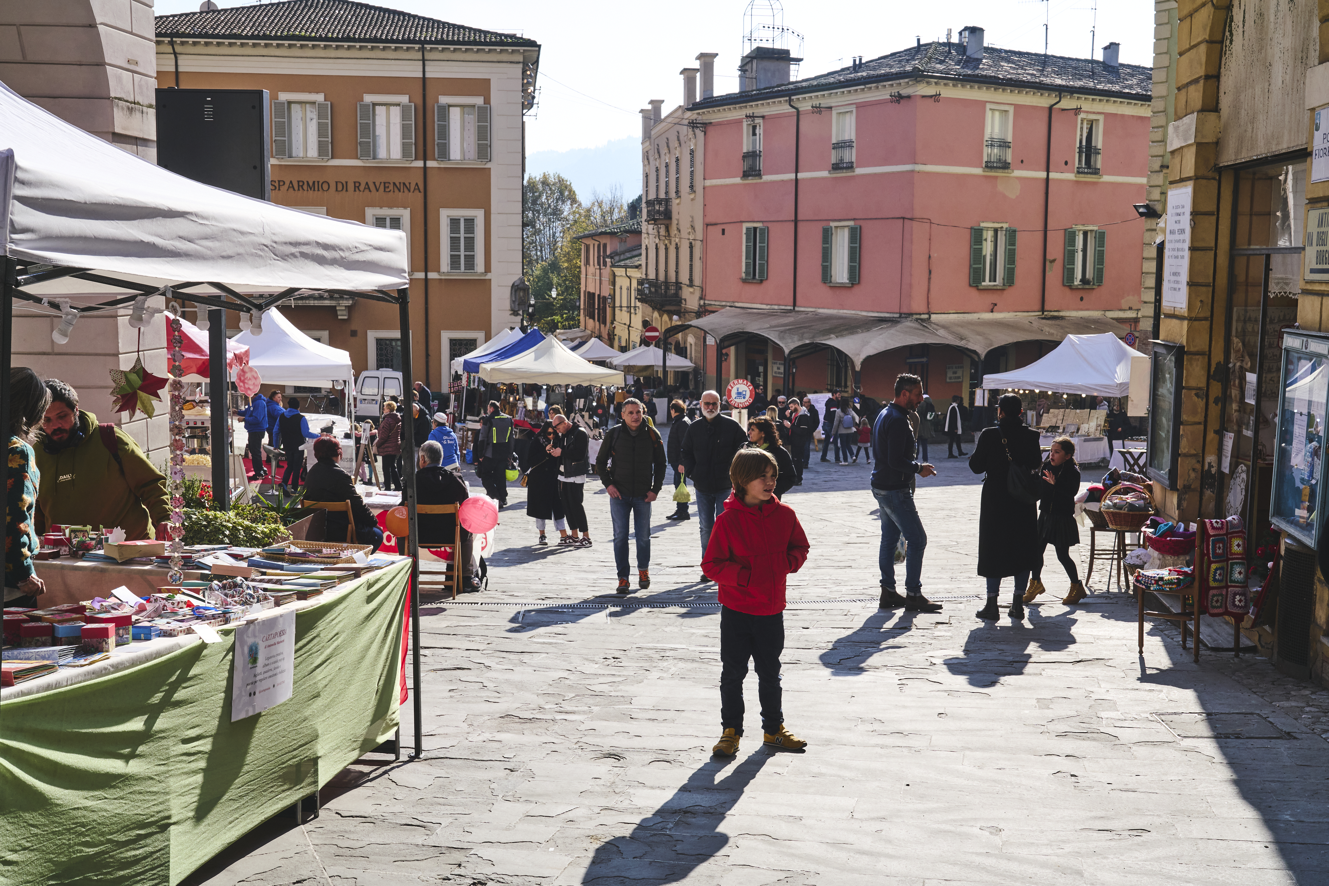 L’atmosfera è speciale: il centro storico, le piazze, le vie sono animate da musiche, intrattenimento, bancarelle di artigianato e dalla compagnia dei visitatori che si perdono tra i panorami dei tre colli – della Rocca, della Torre dell’Orologio e del Santuario del Monticino – e assaporano la cultura materiale della valle del Lamone.