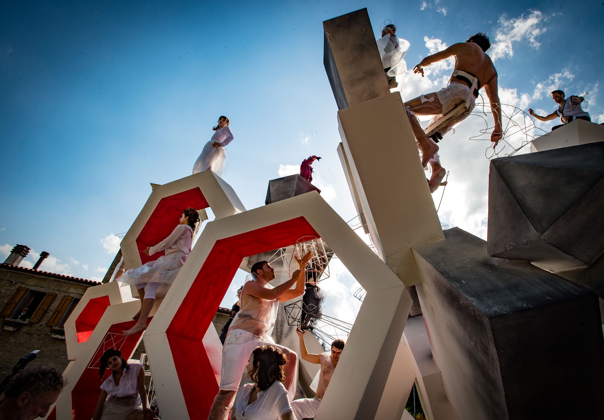 I figuranti restano immobili in forme plastiche per tutta la sfilata: il corpo umano viene plasmato come fosse gesso, fondendosi col carro stesso in un linguaggio popolare che avvicina i carri casolani agli affreschi medievali. Il gesso si lega alla storia del luogo, un paesaggio dominato dalla Vena del Gesso Romagnola, Patrimonio Mondiale dell'UNESCO.