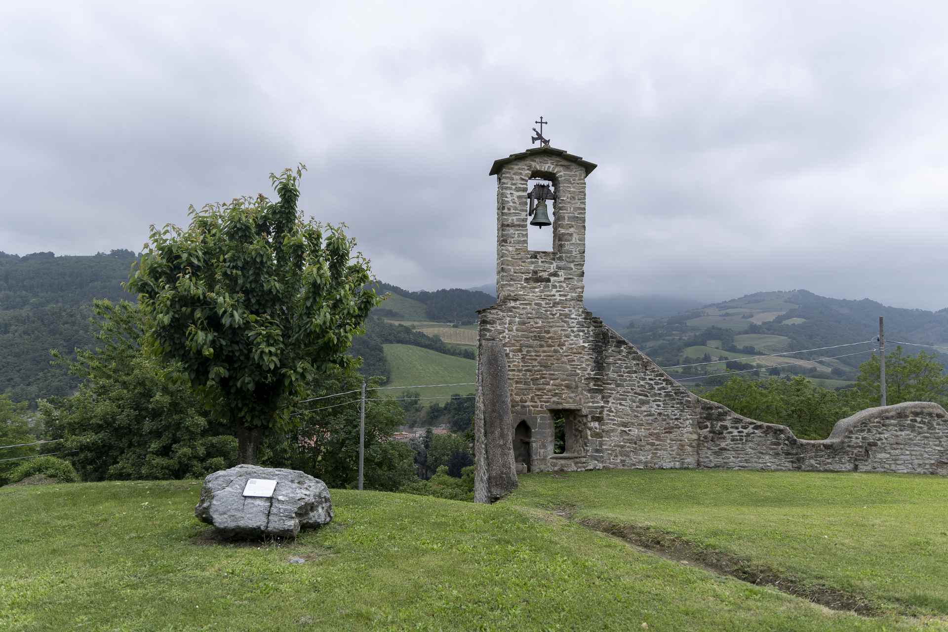 Della struttura rimangono solo una parye di muro perimetrale e il campanile a vela, che ha conservato la sua campana datata 1478, che viene suonata ancora oggi alla nascita di ogni bambino casolano. La chiesa era dedicata all'Assunzione della Vergine e legata al primitivo castello di Casola, distrutto dai faentini nel 1216 con la dispersione degli abitanti, che hanno però continuato ad usare l'edificio come luogo di culto e di sepoltura.