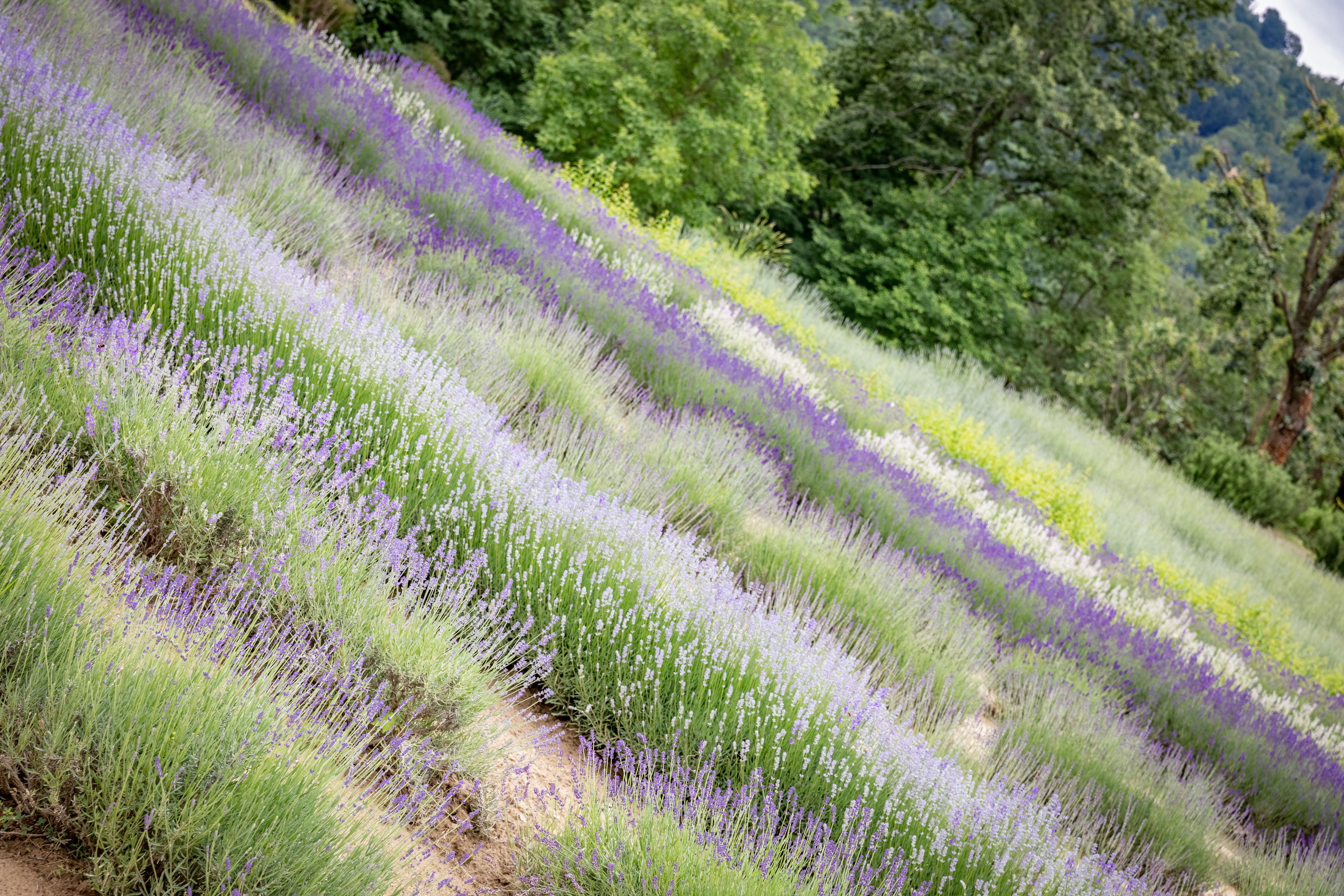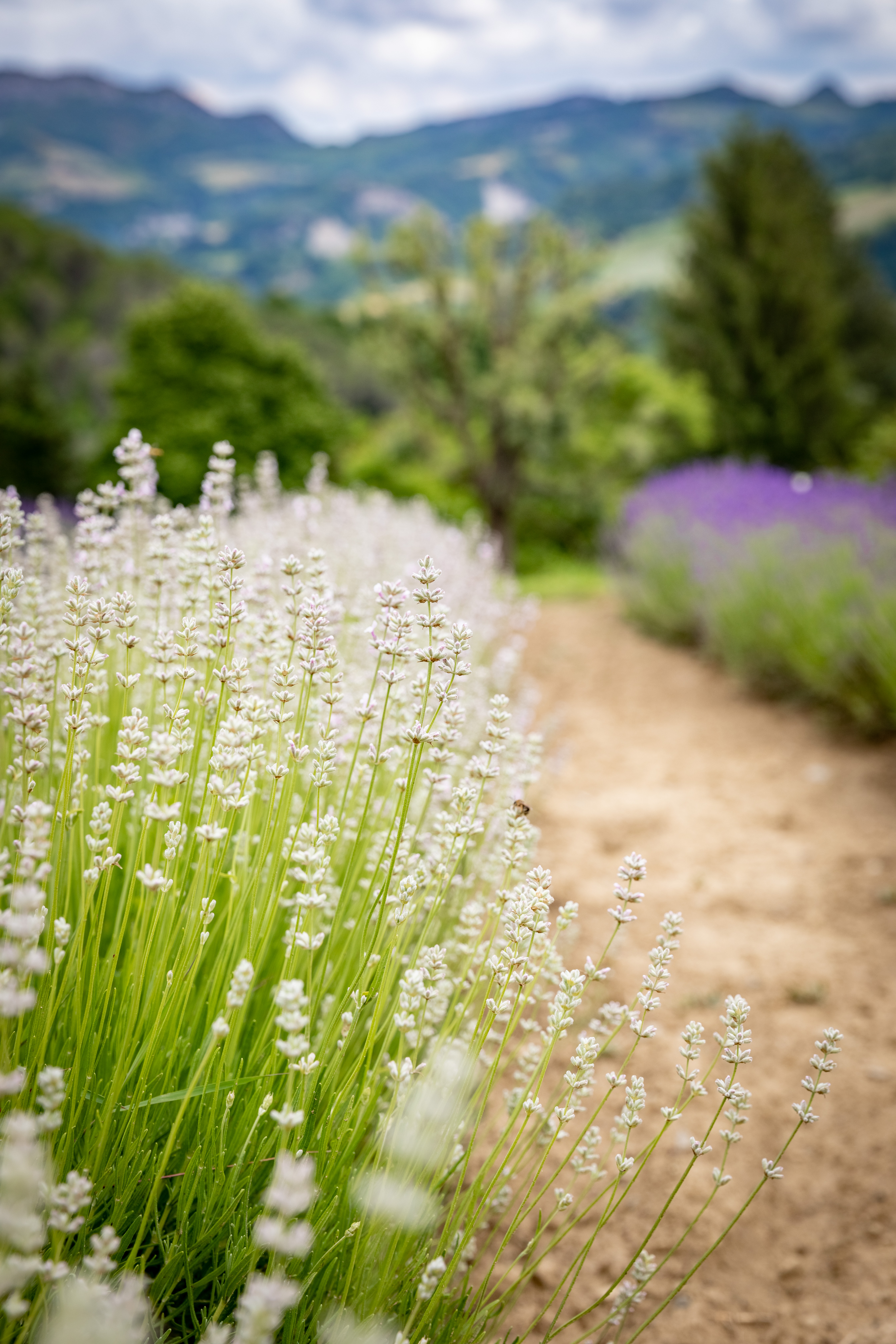 La lavanda è l'essenza simbolo di questo luogo che ne ospita 20 diverse tipologie, coltivate con cura e attenzione. All'inizio dell'estate le piante sono all'apice della fioritura e creano un'esperienza multisensoriale unica in cui i profumi e i colori si fondono in un percorso indimenticabile, segnato da tutte le sfumature della lavanda, dal blu al viola, dal rosa al bianco.