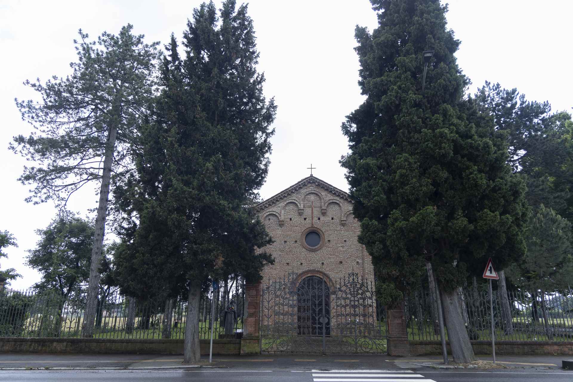 Nel presbiterio si conserva un ampio frammento dell’affresco cinquecentesco Madonna con Bambino in trono e quattro santi del 1532, attribuita a Girolamo da Treviso Il Giovane. Intorno alla chiesa si trova il Parco delle Rimembranze, creato nel 1924 in onore dei caduti della grande guerra, una piccola distesa di pini recinta dalla cancellata in ferro battuto opera del maestro faentino Luigi Matteucci.