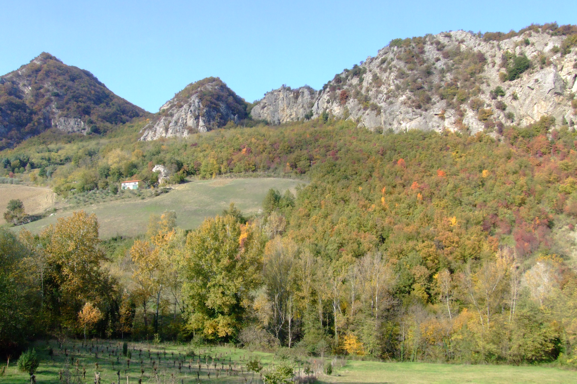 Qui la natura non è spettacolo, ma presenza viva. La roccia bianca, spigolosa, della vena gessosa affiora tra i boschi e si lascia toccare, scalare, attraversare. È una dorsale lunga e silenziosa, che corre per decine di chilometri come una spina dorsale minerale, custodendo grotte, sentieri, fossili, storie. Ma anche silenzi, profondi e leggeri, che sanno fare spazio ai pensieri.