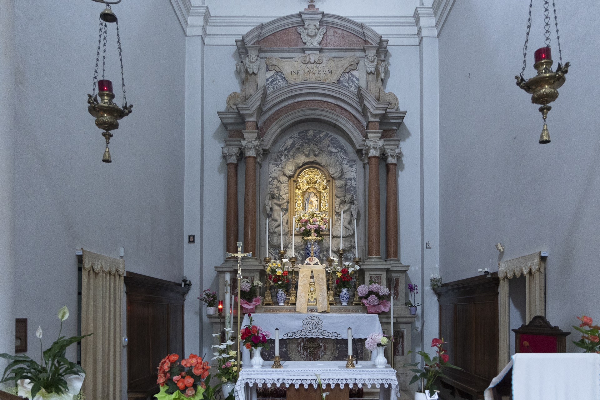 Il santuario si presenta con forme lontane dal gusto barocco diffuso nella Romagna dell'epoca, data la semplicità delle forme e delle superfici. L'altare maggiore, composto in marmi pregiati, è opera degli scultori ravennati Giovanni e Domenico Fuschini.