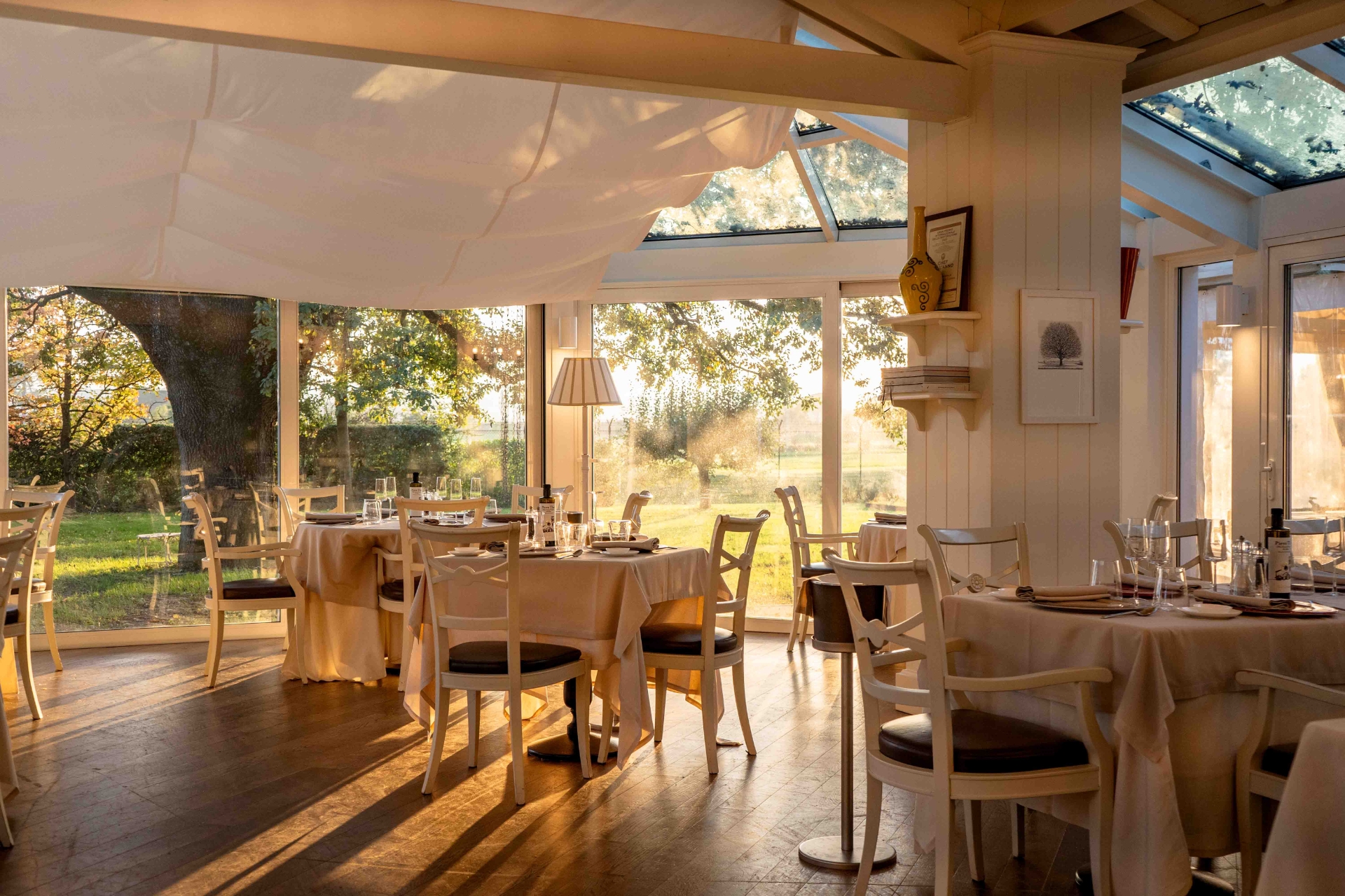 Il ristorante Cinque Cucchiai di Faenza prende il suo nome dal dolce tradizionale della famiglia Bucci: cinque semplici e deliziosi ingredienti in grado di creare ricordi indelebili ed incisi nel tempo per chiunque lo assaggi. Il ristorante si trova all'ombra di una quercia secolare, donando suggestività e bellezza allo scenario che si crea. Sarai accolto all'interno di una sala dallo stile raffinato, romantico e provenzale, con cura nei minimi dettagli. Il bianco e le sue tonalità predominano l'ambiente, ritrovandoli in particolare nel tovagliato, nell'arredo e nelle pareti, così da decorare la sala in maniera elegante. Il tutto si integra perfettamente con l'ambiente che lo circonda, potendo ammirare dalle vetrate lo splendido panorama nel cui il ristorante Cinque Cucchiai è immerso. Qui troverai un menù con proposte di pesce, ma non mancano quelle a base di carne e proposte vegetariane. I prodotti sono a km 0 e di questo te ne potrai accorgere semplicemente ammirando lo splendido Orto Giardino, situato di fianco al ristorante, con i colori delle piante e delle erbe che ritroverai nel piatto. Inoltre, sarai deliziato da pane, grissini e focacce, dalla pasta fatta in casa e dai prodotti cucinati con cura ed amore. Se non sai cosa scegliere, potrai optare tra i nostri fuori menù o da un percorso culinario di 4 portate, così da provare gli abbinamenti fatti dal nostro Head Chef Alessandro Terrasi e dalla nostra brigata. Il ristorante a Faenza Cinque Cucchiai è aperto anche alla clientela esterna e ti aspetta per offrirti piatti romagnoli come non li hai mai mangiati prima.