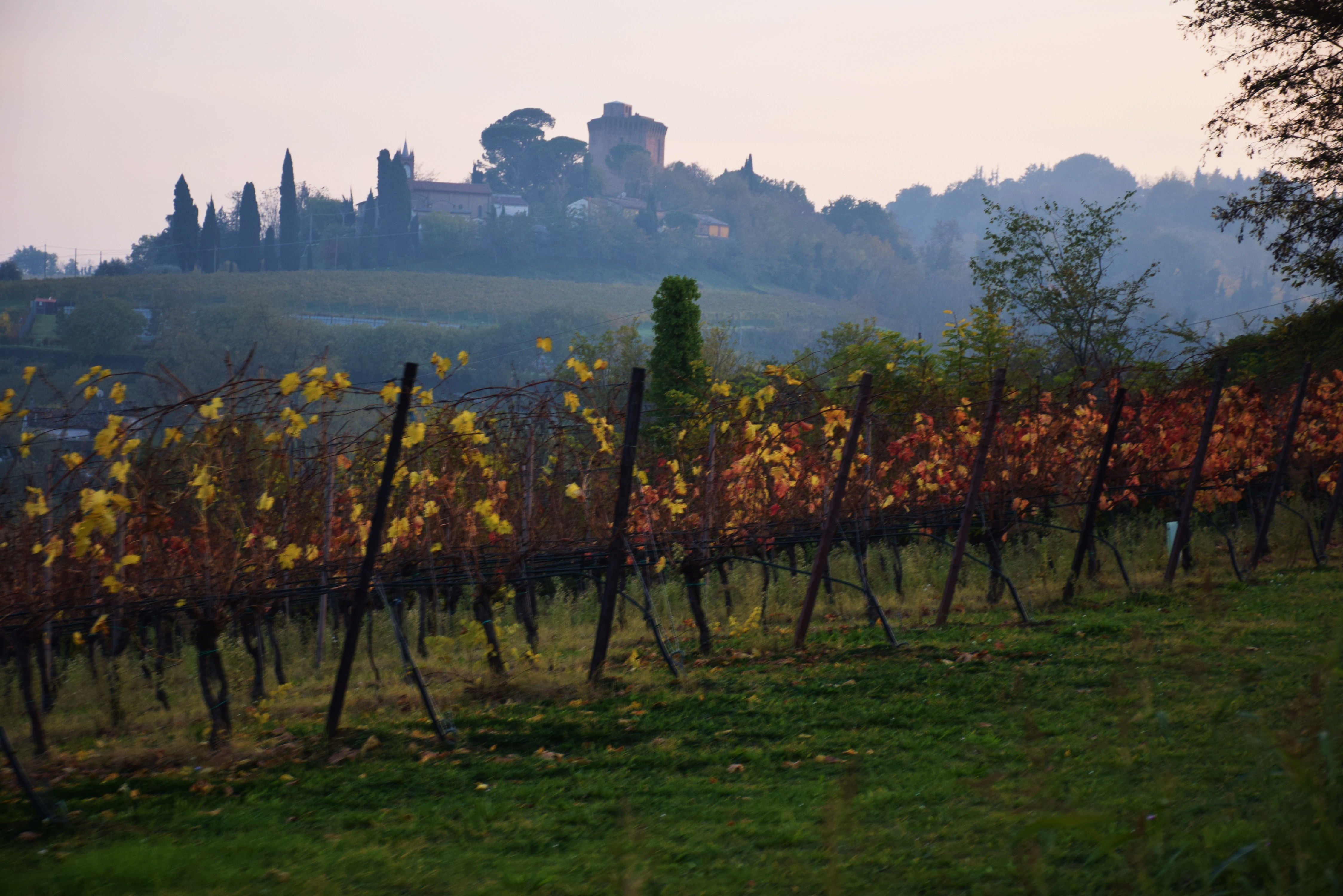 La vite domina i due crinali collinari paralleli al torrente, su terreni argillo-calcarei a un'altitudine tra 100 e 200 metri. Qui i Sangiovese sono caldi, tannici e austeri, ma sviluppano nel tempo grande complessità e dinamismo.