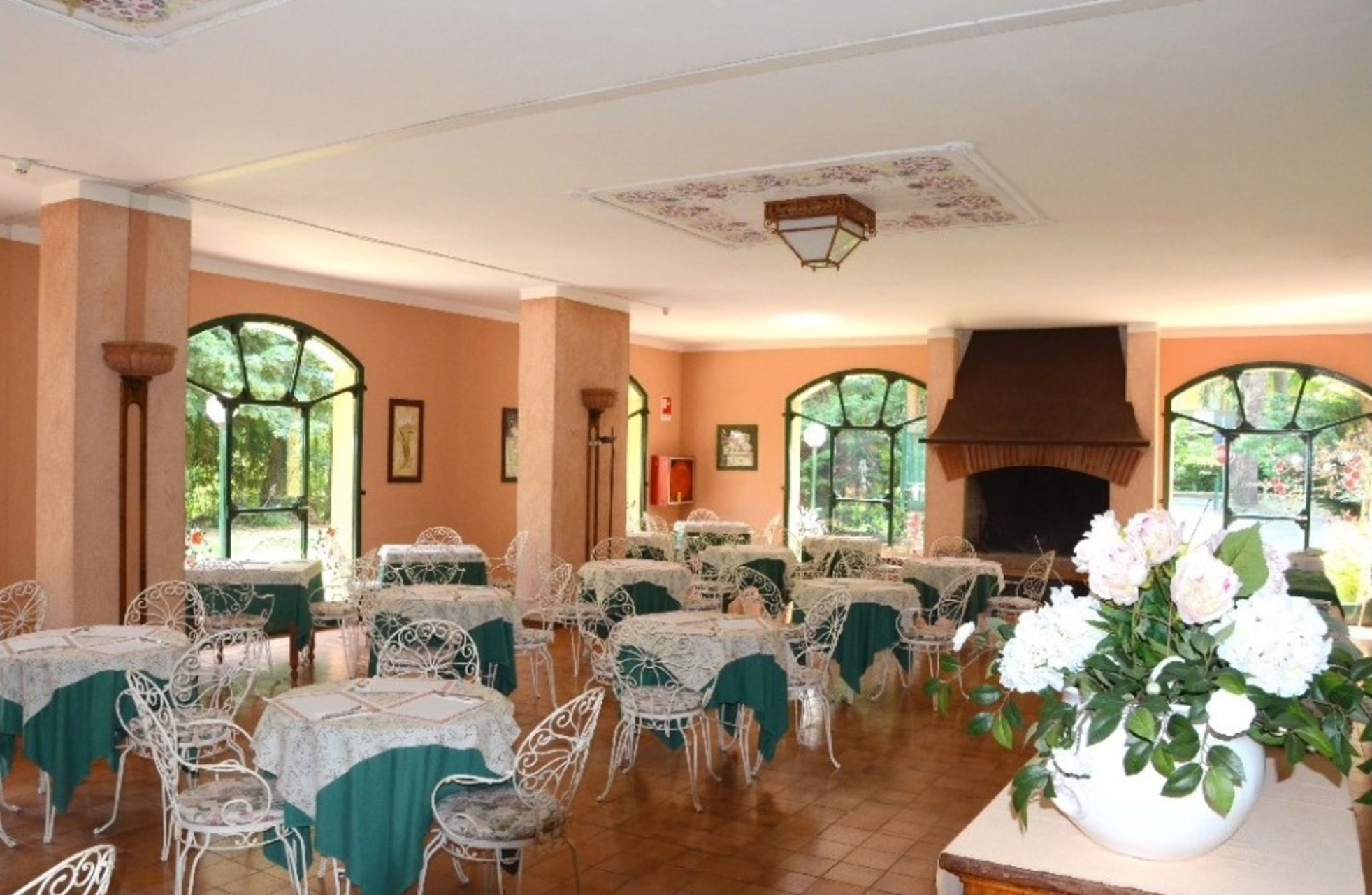 Fiore all’occhiello dell'Hotel è la veranda dedicata alla colazione, in perfetto stile Liberty, con un bellissimo camino. Nelle giornate di sole la colazione è servita all’aperto nei tavoli del grande giardino alberato. La colazione è a buffet con servizio al tavolo.