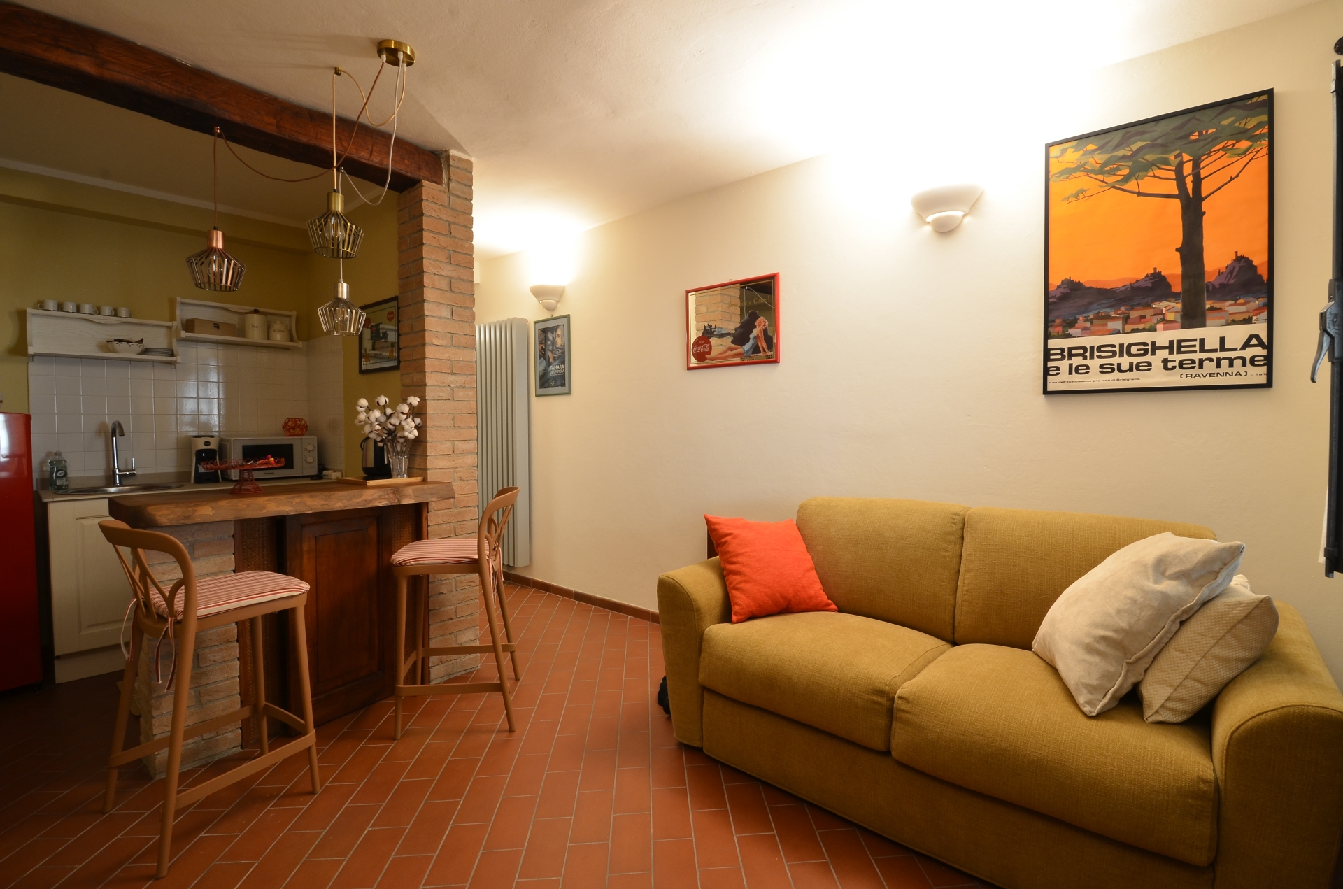 Nell'antico borgo medioevale di Brisighella un piccolo e prezioso bilocale indipendente, costruito a ridosso della roccia e che affaccia direttamente sulla Via degli Asini, la celebre strada sopraelevata, che segnava il percorso dei birocciai verso le vicine cave del gesso.