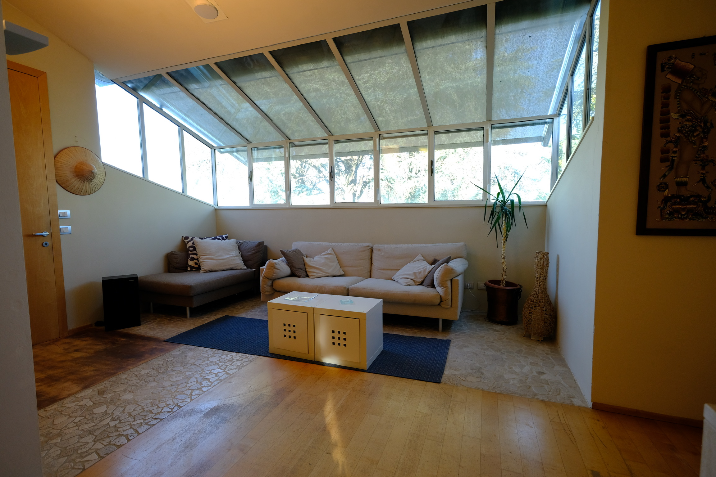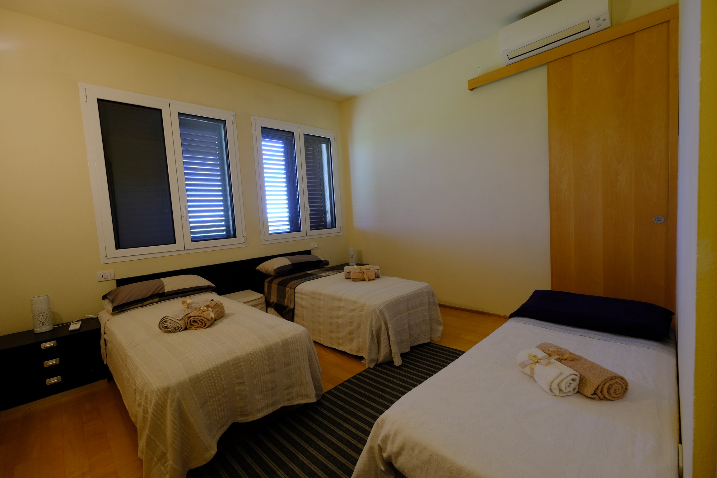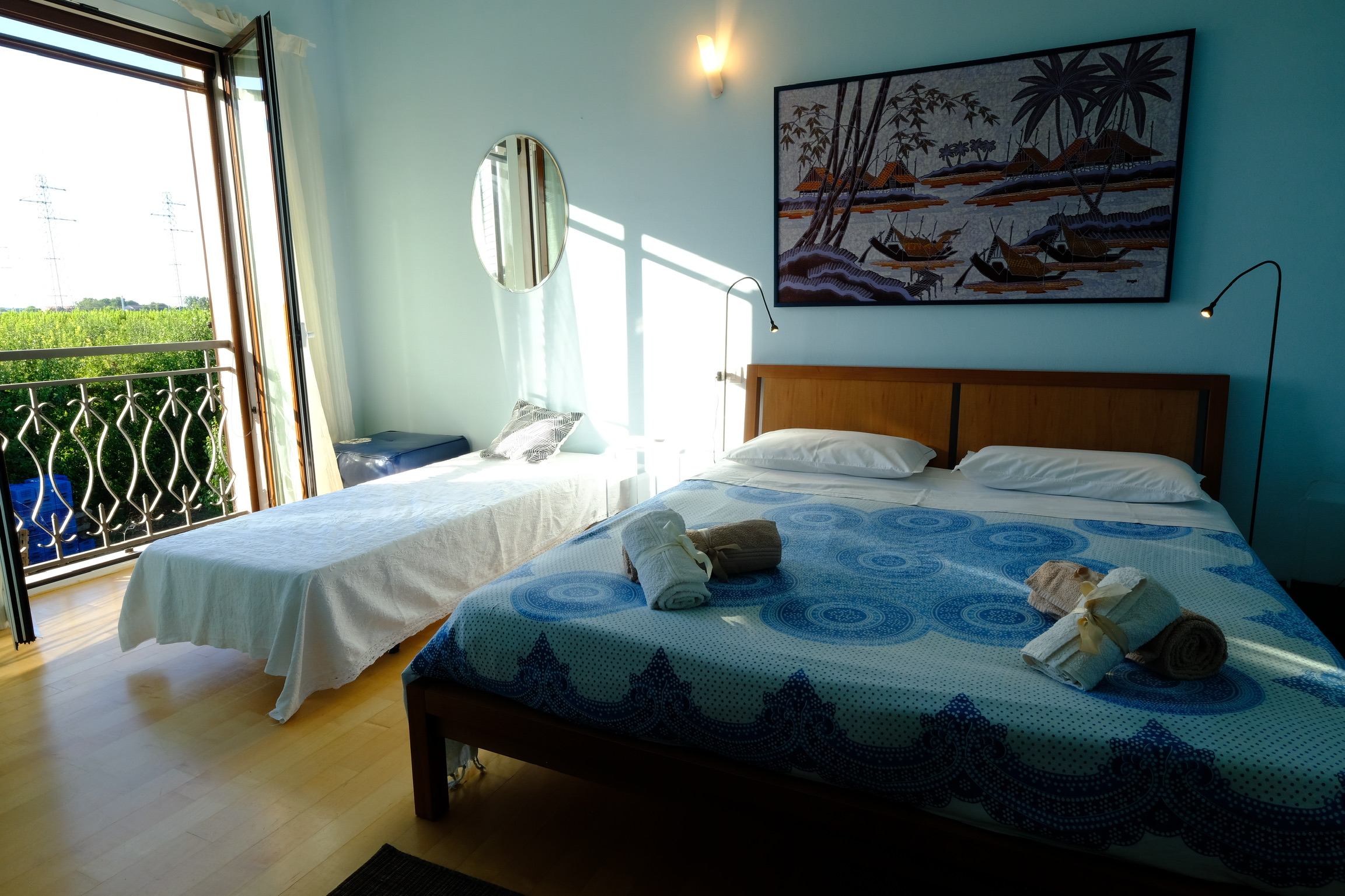Appartamento di 150 mq ubicato al primo piano di una casa in campagna con balcone e veranda vista giardino. All’interno troverete una cucina attrezzata con frigorifero, forno, microonde, tostapane e un'ampia sala, due camere da letto ciascuna con bagno privato, fornito di asciugacapelli, asciugamani e sapone.